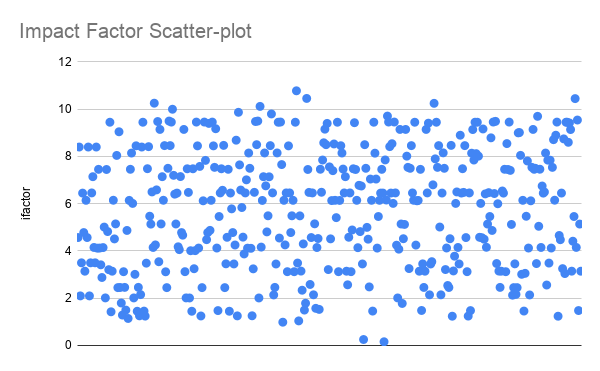 Impact factor graphed accordingly for published conference and journals.